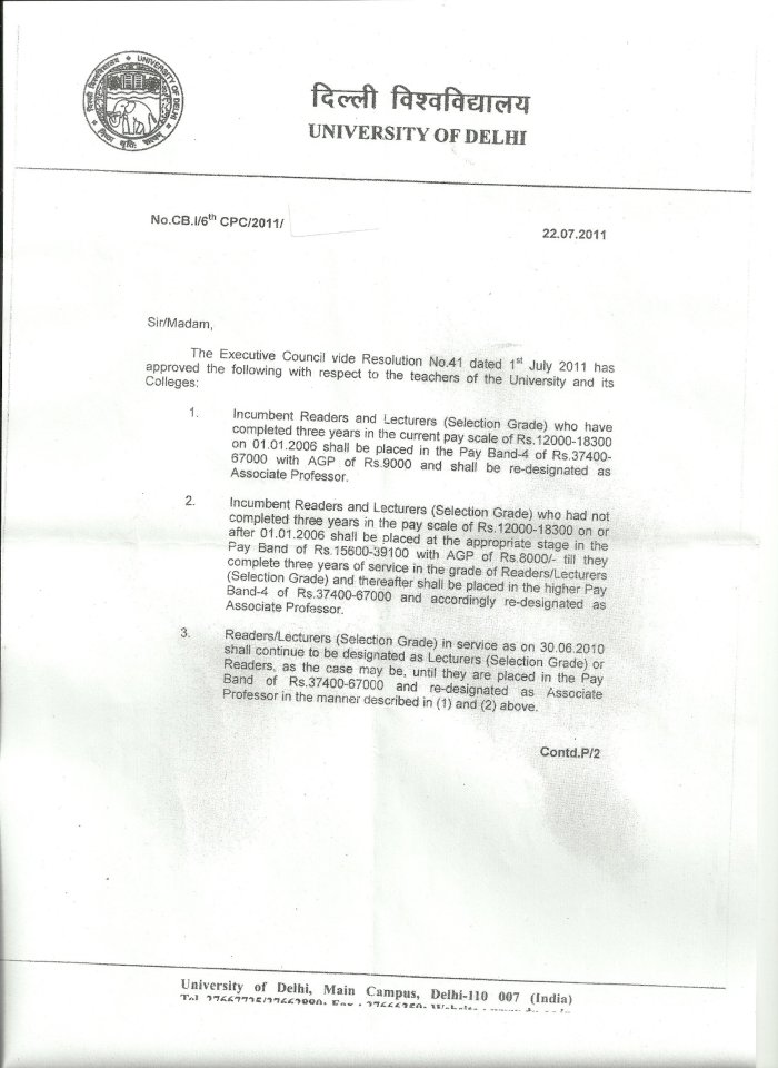 1. There is no indication for other equivalent cadres e.g. Librarians in these circulars. As and when cases of Librarians will be put up University Administrative staff will create problems. It should be clearly mentioned in the circulars as it was mentioned in the pay review committee and MHRD notifications.