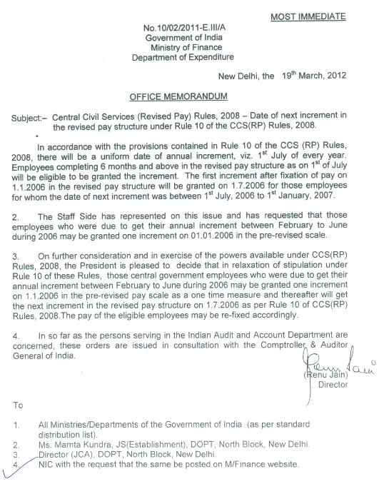 Central Civil Services (Revised Pay) Rules, 2008 – Date of next increment in the revised pay structure under Rule 10 of the CCS (RP) Rules, 2008.(584 KB)