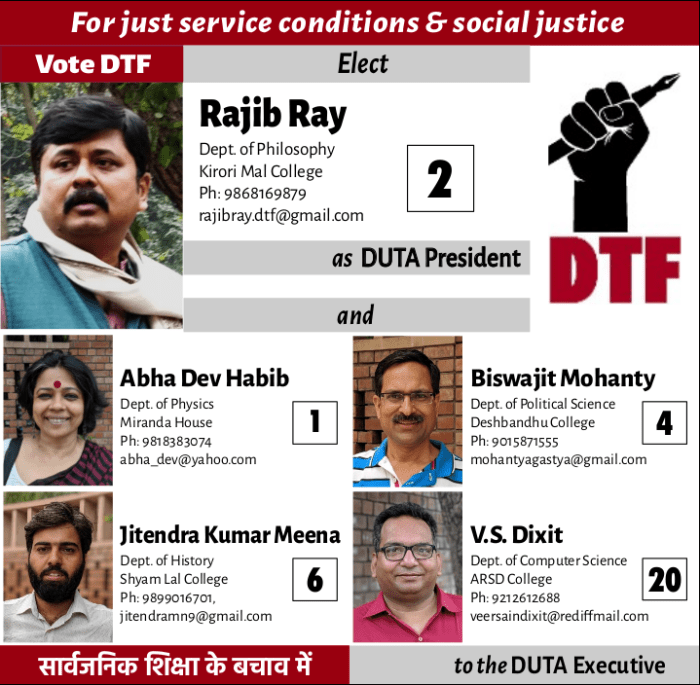 If we allow Delhi University to be fragmented as proposed by the DNEP, DUTA’s continuance will be in jeopardy as teachers are placed at the mercy of BoGs of separate autonomous institutions. Getting rid of unions challenging authoritarian administration and government education policies is an intended part of the liberalisation policy in the education sector.