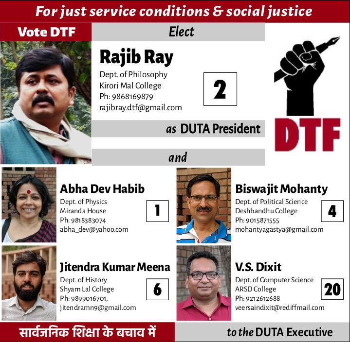 If we allow Delhi University to be fragmented as proposed by the DNEP, DUTA’s continuance will be in jeopardy as teachers are placed at the mercy of BoGs of separate autonomous institutions. Getting rid of unions challenging authoritarian administration and government education policies is an intended part of the liberalisation policy in the education sector.